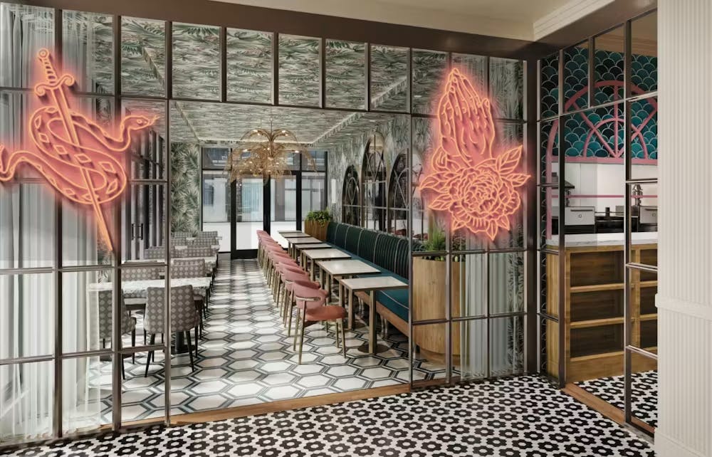 Sunday School, the coveted Champagne & Cocktail Lounge sitting above Sunday’s Best on the 2nd floor, is a never-seen-before rooftop experience welcoming guests 21 and older to a South Beach Style Resort vibe making you feel like you’ve been transported to an oceanside escape without ever leaving the city. This dreamy lounge is filled with captivating pink & gold accents, lush greenery, open rooftop-endcap atriums and overlooks the cityscape providing a never ending sparkle!